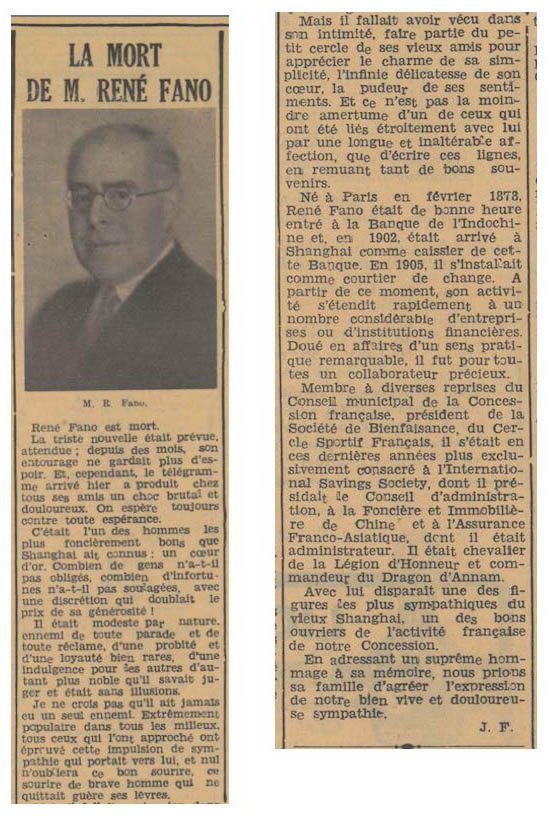 La mort de René Fano par Jean Fredet Journal de Shanghai, 10 mars 1937, page 6.